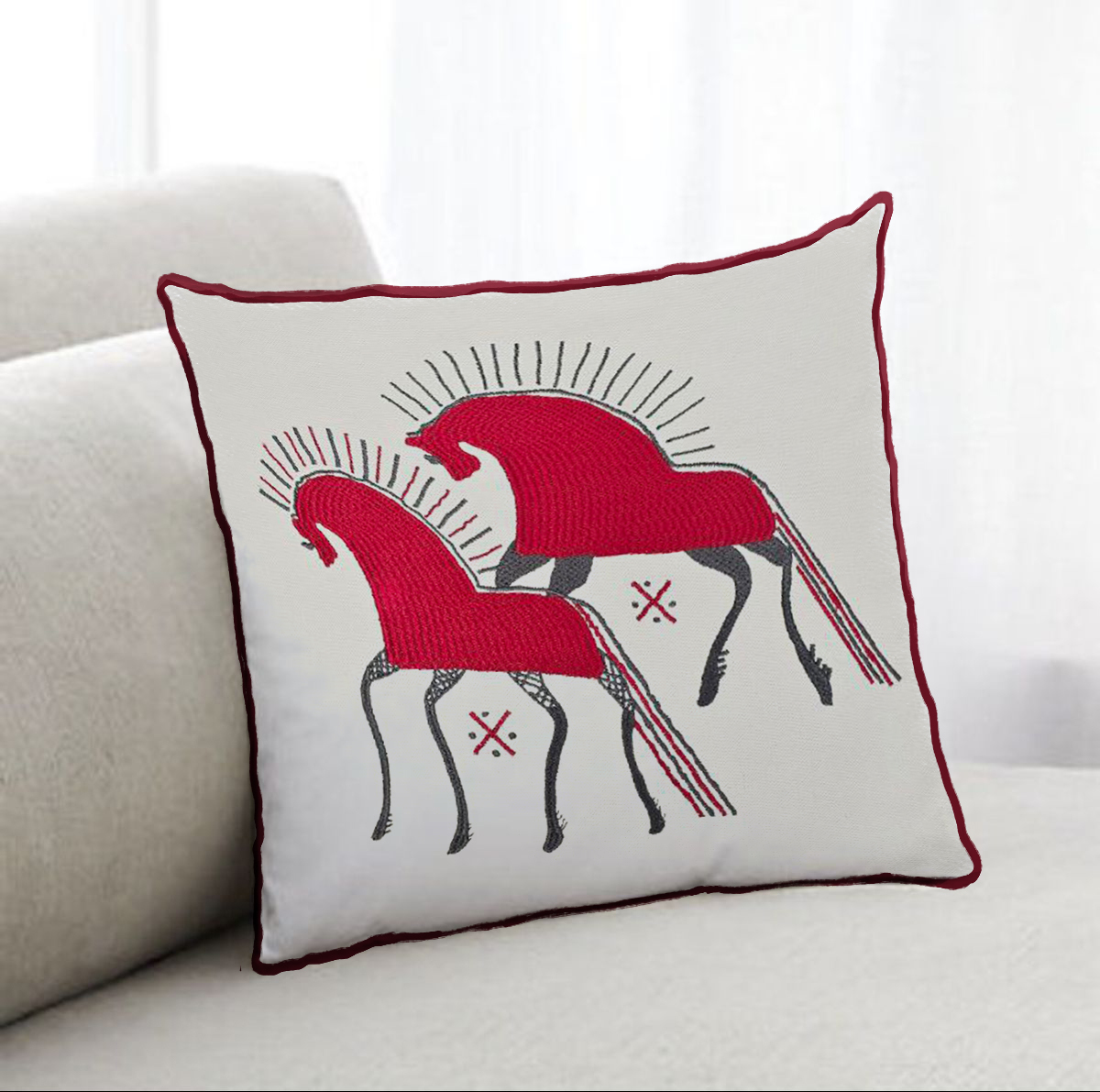 Красный конь — элемент мезенской росписи, одного из старейших художественных промыслов Русского Севера. Красный конь олицетворяет солнце, а также материальный достаток и стабильность. В узоры старинных изделий художники вкладывали целые рассказы, а для близких оставляли послания или пожелания.
