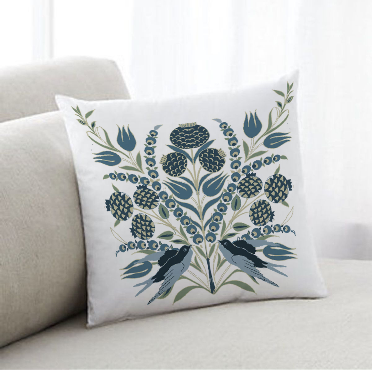 Подушка "Вензель с птичкой"